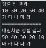 System.out.println("내림차순 정렬 결과");