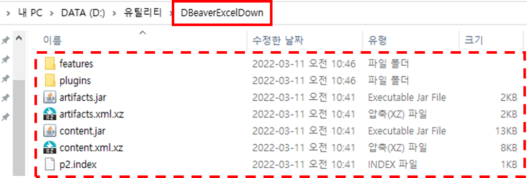 ▼ 공식 사이트에서 파일을 하나씩 다운로드 받고, 폴더명을 'DBeaverExcelDown'으로 지정합니다.