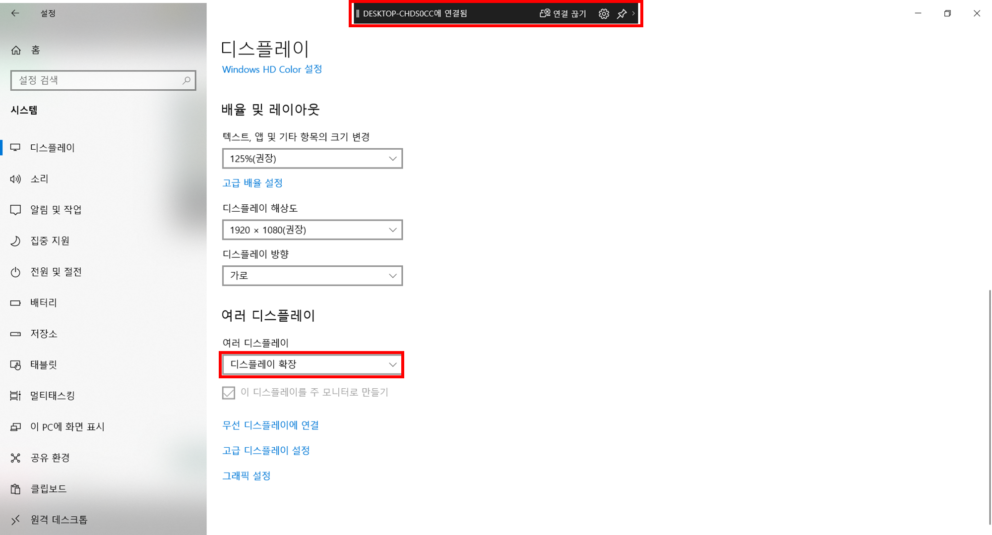 추가적으로, 디스플레이 확장으로 설정하면 완료 !