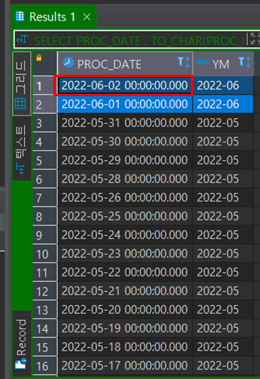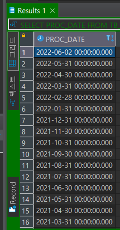 말일자가 도래하지 않은 6월도 가장 최근 일자인 06-02일의 데이터가 조회됩니다. 성공!