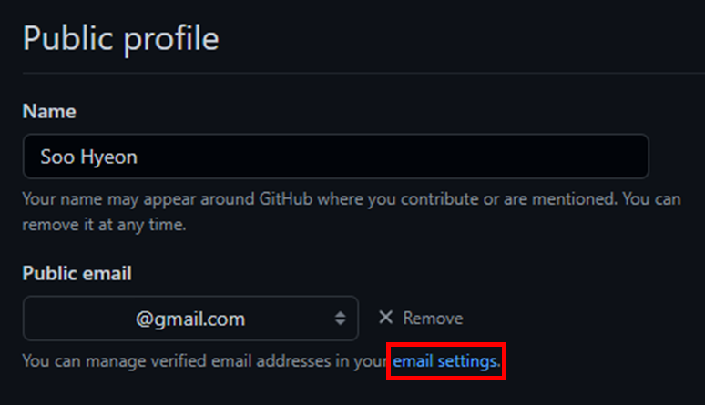 Public profile > email settings를 클릭합니다.