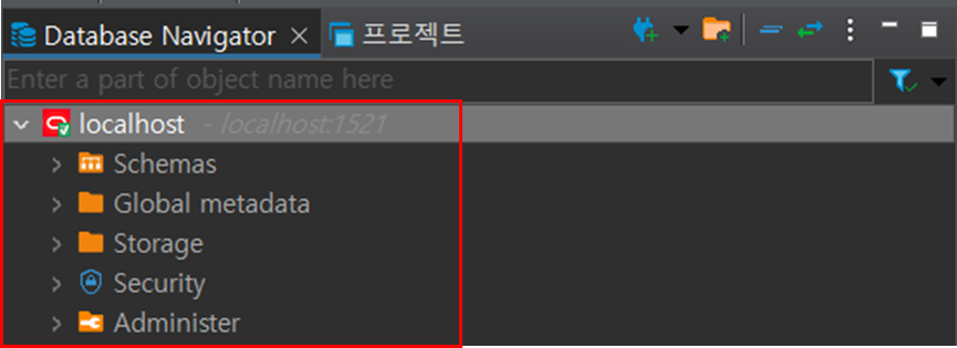 이제 Database Navigator에 접속정보가 추가된 것을 확인할 수 있습니다.