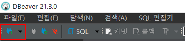 DBeaver 좌측 상단의 '새 데이터 베이스 연결' 버튼을 클릭합니다.