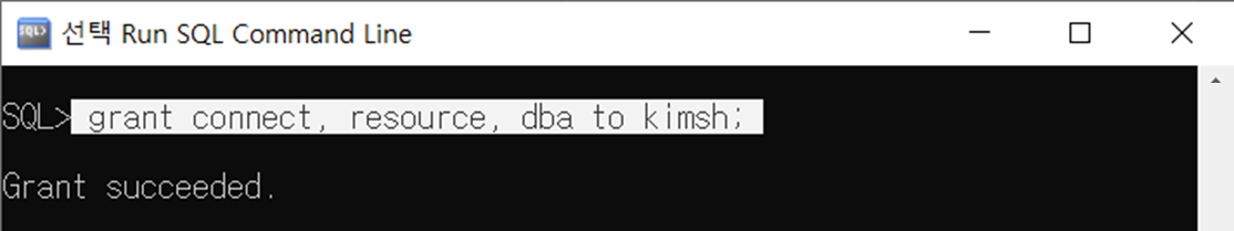 [예시] id가 kimsh인 사용자에게 권한 부여하기