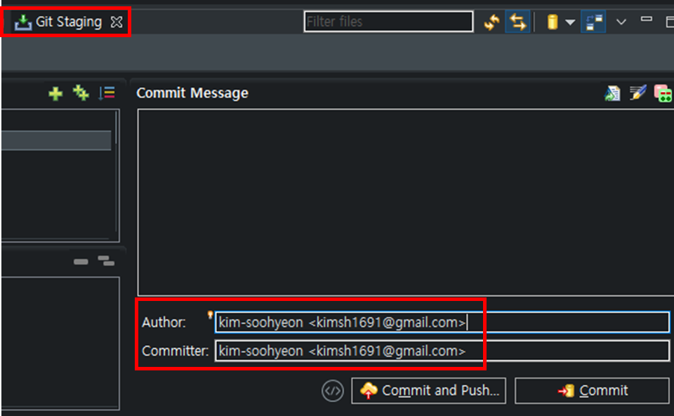 아래와 같이 Git Staging 탭에서 Author와 Committer가 정상적으로 변경된 것을 확인할 수 있습니다.