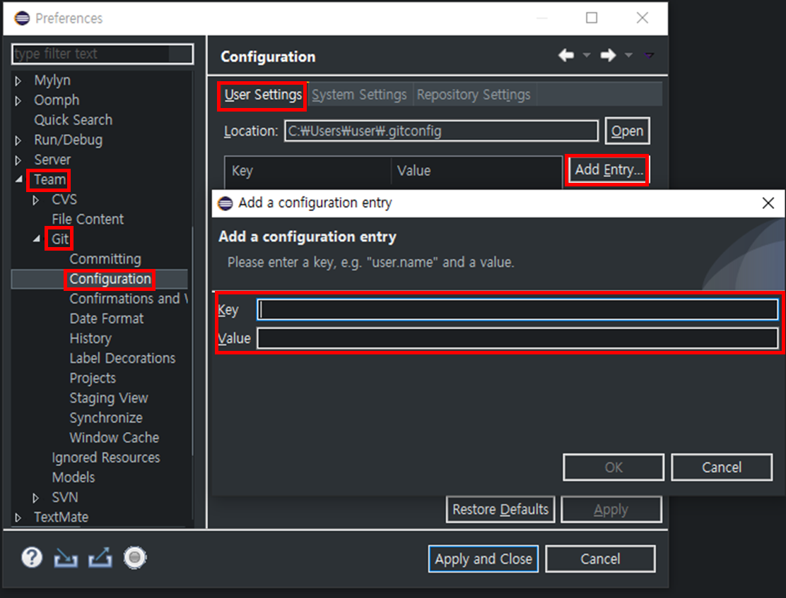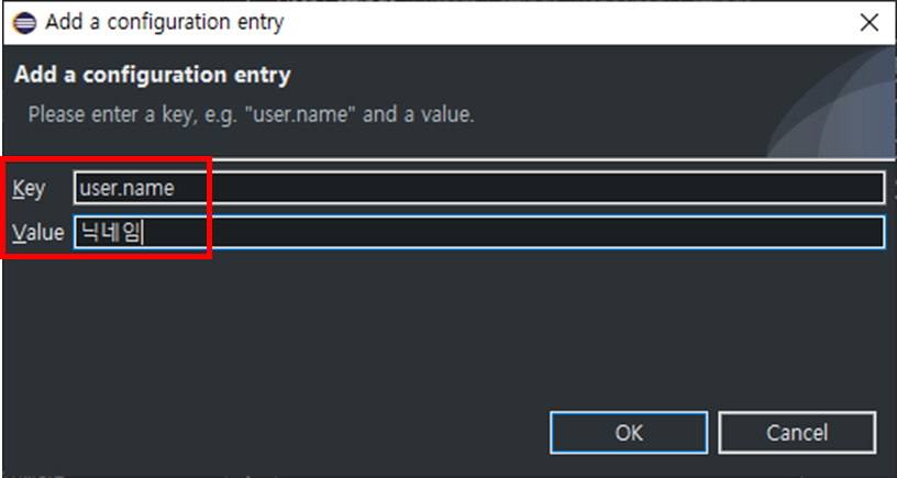 - Add Entry 버튼을 클릭하여, key와 value값을 등록해줍니다.