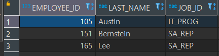 SELECT EMPLOYEE_ID, LAST_NAME, JOB_ID