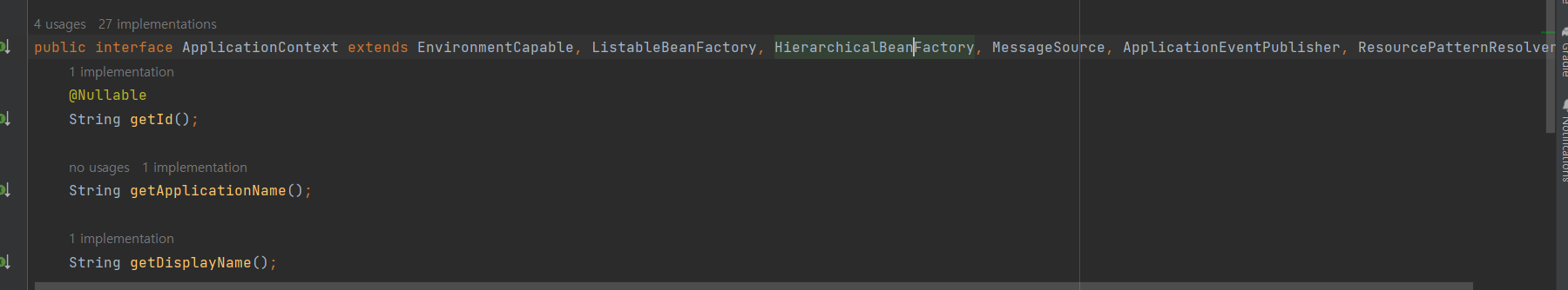 - ApplicationContext: BeanFactory를 상속하여 확장한 인터페이스
