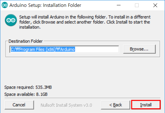 바꾸고 싶다면 Browse... 버튼을 클릭해서 위치를 지정하고 Install 버튼을 클릭해주세요.