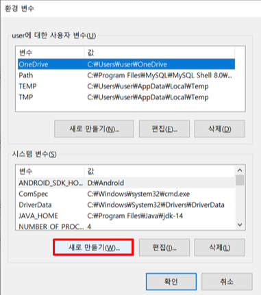 - 아까 복사해둔 jdk 설치 경로를 변수 값에 넣고 확인 버튼을 클릭합니다.