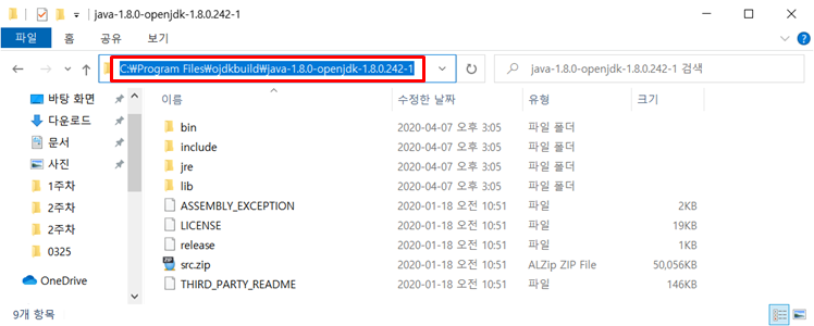 저는 C:\Program Files\ojdkbuild\java-1.8.0-openjdk-1.8.0.242-1 이 경로에 설치했습니다.
