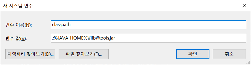 | 변수 값 | .,%JAVA_HOME%\lib\tools.jar |