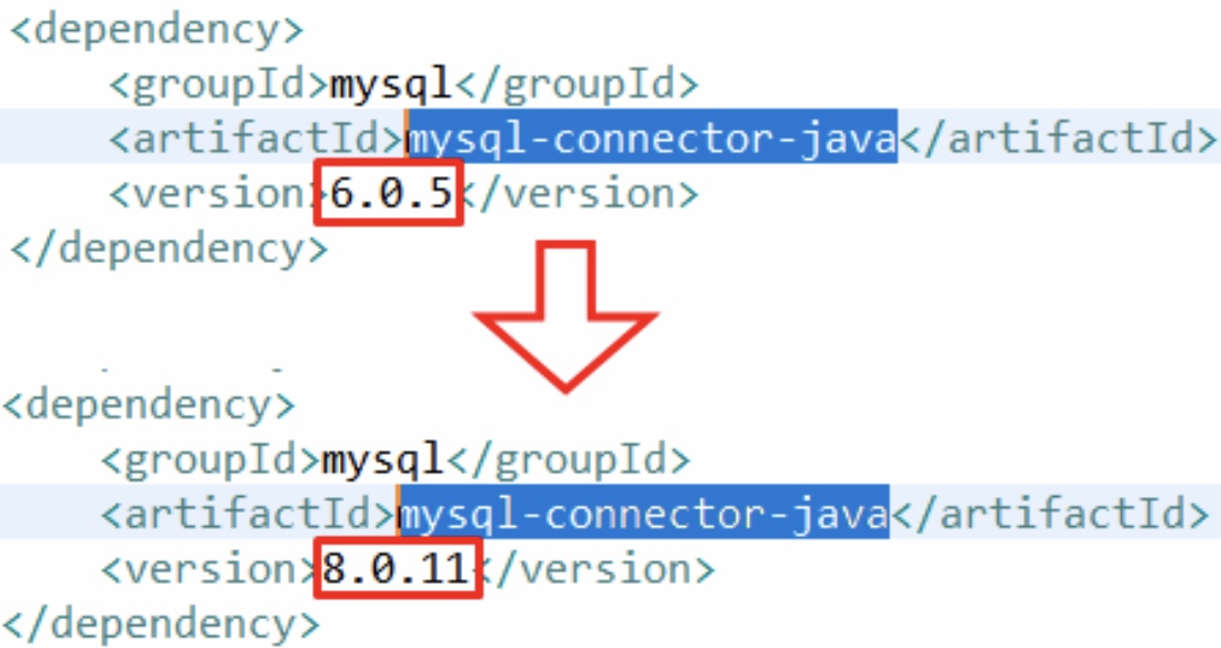 pom.xml 에서 mysql-connector-java 버전을 8.0.11로 바꿔줍니다.