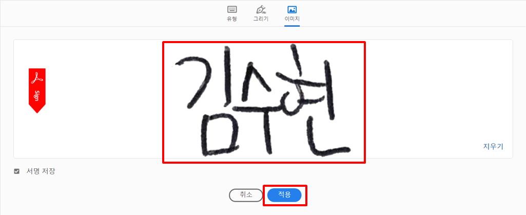 아래 그림과 같이 서명을 정상적으로 추가할 수 있습니다!