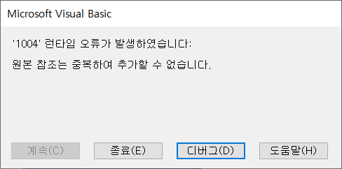 '1004 런타임 오류가 발생하였습니다: