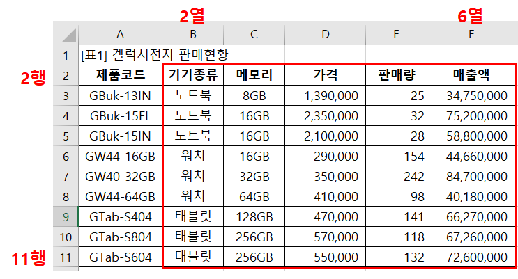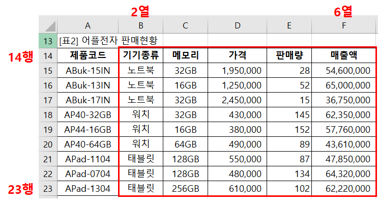 어쨌든, 저는 2행2열~11행6열(R2C2:R11C6)과, 14행2열~23행6열(R14C2:R23C6)을