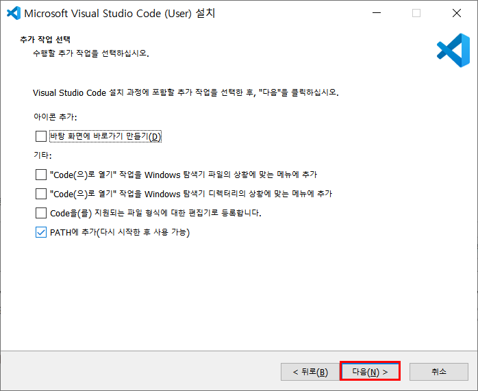 이상으로 Window 10 에서 VS Code 설치하는 방법을 마치겠습니다.