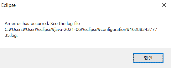 - 이클립스를 재실행하면, 새로운 오류가 발생합니다.